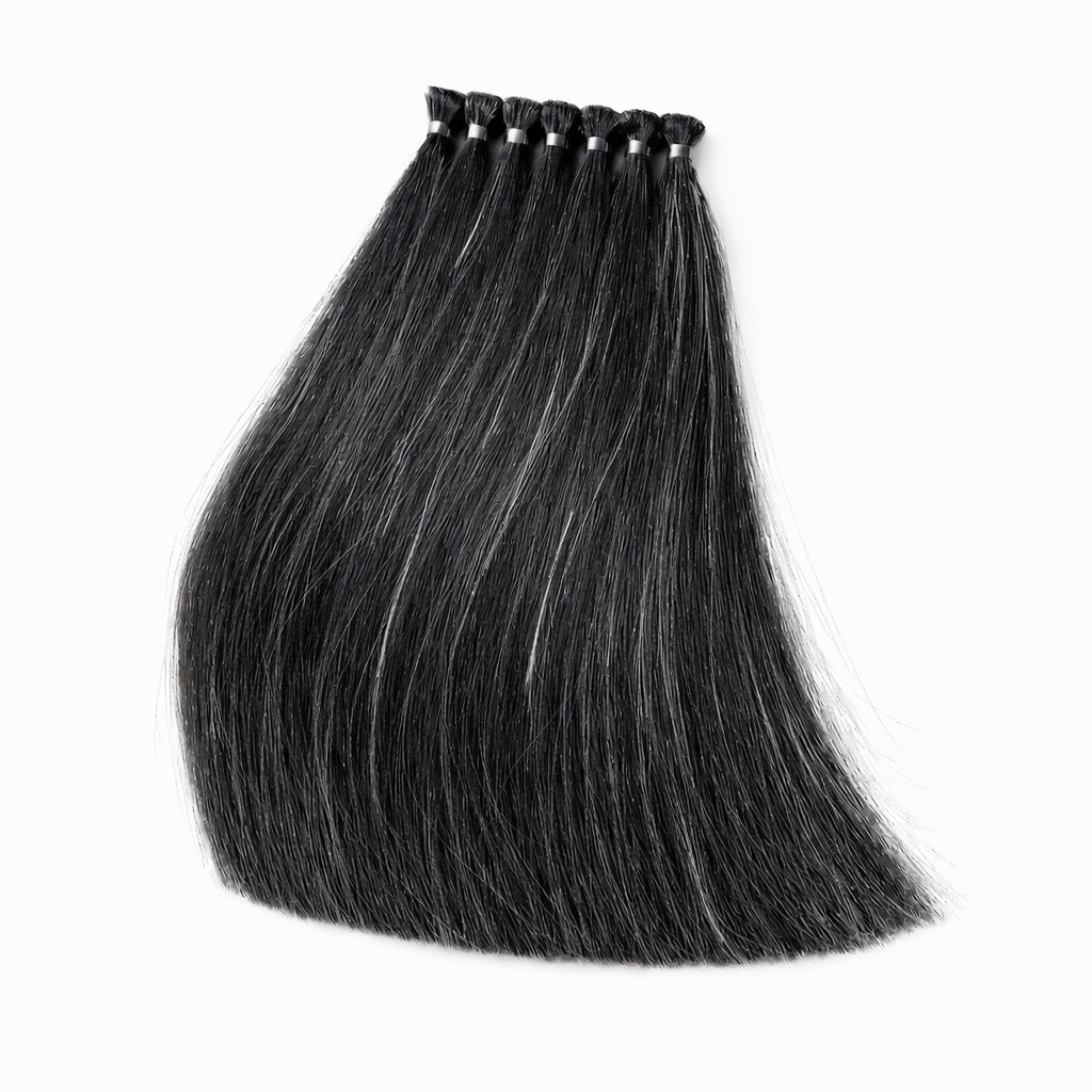 黒髪と白髪が混在した人毛毛束を使用することで、白髪染めやグレイカラー剤の