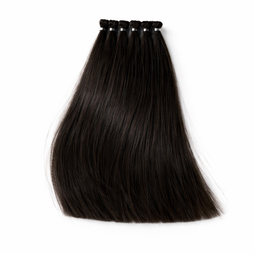 本商品は、技術検証・カラー評価用途向けの人毛毛束(黒毛)です。