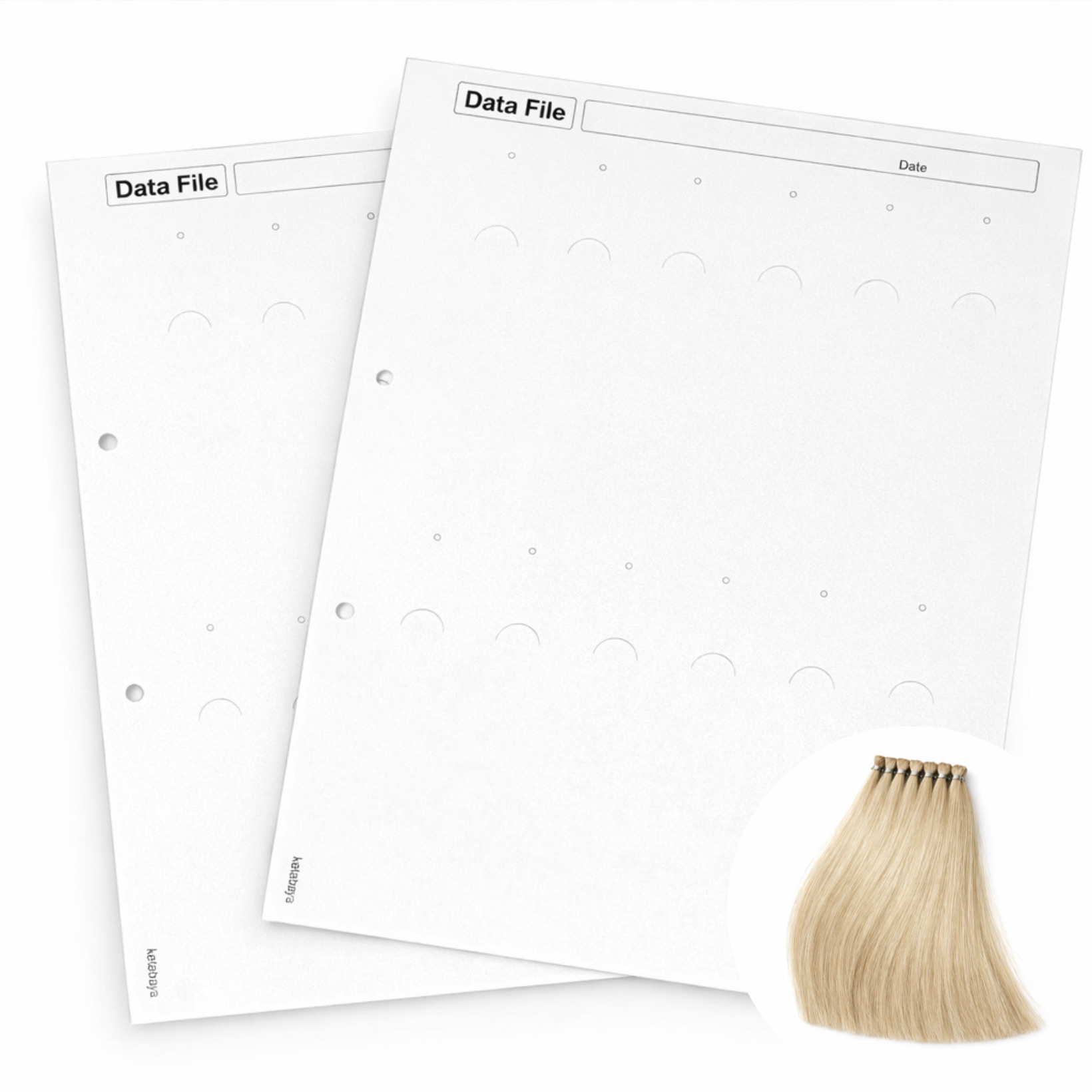 ■毛束を染め、データーファイルとして残しておけます。 自分の好みのバインダー(2穴)に保存できます。