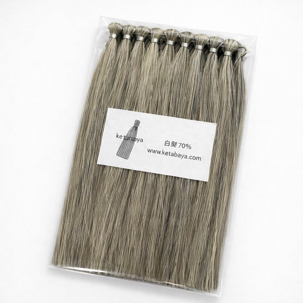 特定個人の髪を束ねたものではないため、白髪の状態には個体差があります。